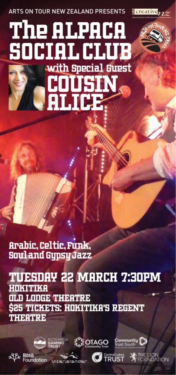 7:30pm start. Tickets $25 at Hokitika’s Regent Theatre or on the night at the door. ARTS ON TOUR brings us The Alpaca Social Club that plays fresh sounds from exotic Continue Reading